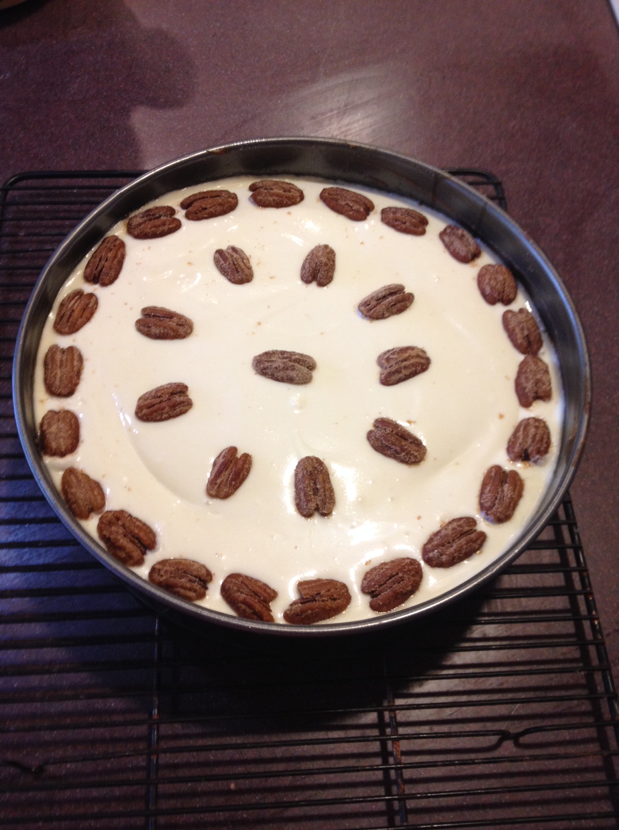 18. Use pecans to garnish top of the cheesecake.