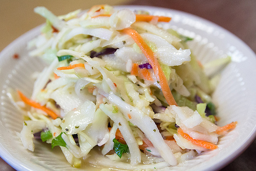 I always thought I hated coleslaw with a passion. I was only ever really exposed to it at potlucks and picnics, but one taste told me it wasn’t for me. I first got an inkling that I might enjoy coleslaw when I accidentally ate some on a weekend away at Cave B in the Columbia Gorge. I was eating lunch in the restaurant there, Tendrils, and I took a tentative bite of the slaw. It was delicious. As the chef wandered by, I asked him what was in it, and he admitted it had apples and ginger.