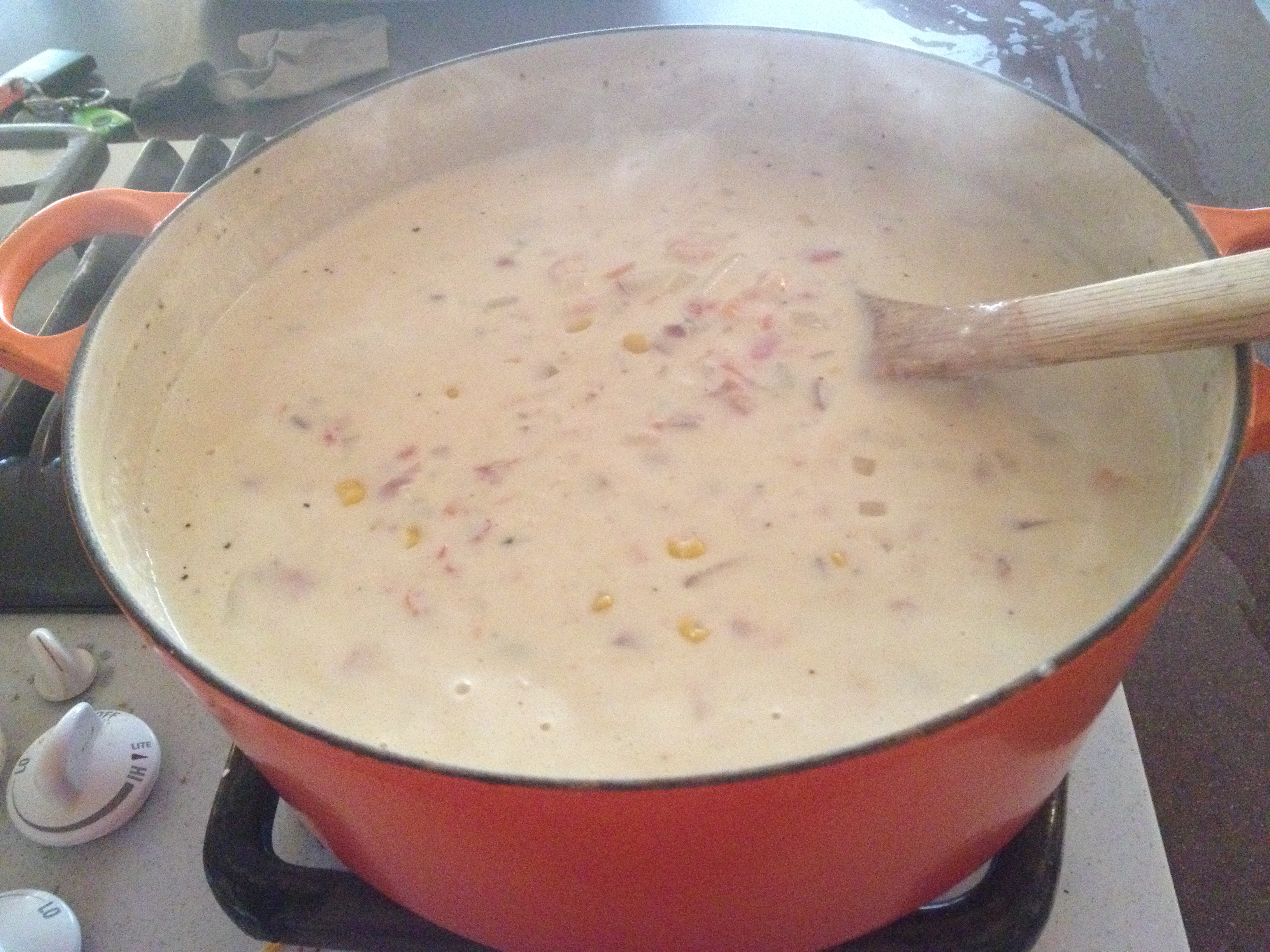 Still, I love chowder. I love its rich creaminess paired with seafood. I love it so much, I almost feel like I’d be willing to suffer the wrath of dairy for it. However, after Christmas Eve, I am reminded that really, no bite of food is worth all of that. And so, I had to come up with a way to make a delicious creamy seafood chowder without dairy and without a grain-based roux to thicken it.
